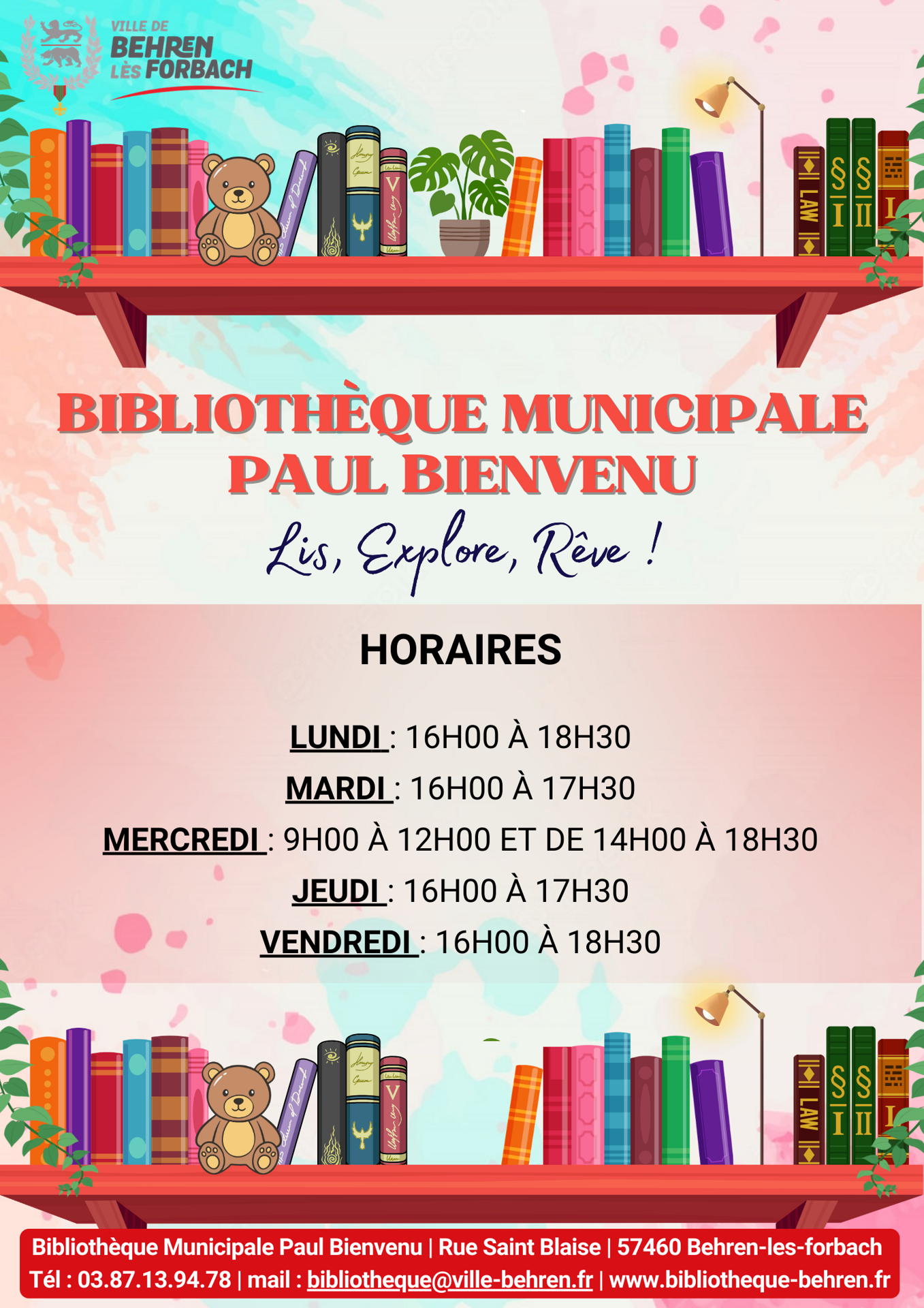 Découvrez les activités hebdomadaires proposées par la bibliothèque municipale P. Bienvenu (hors vacances scolaires) :