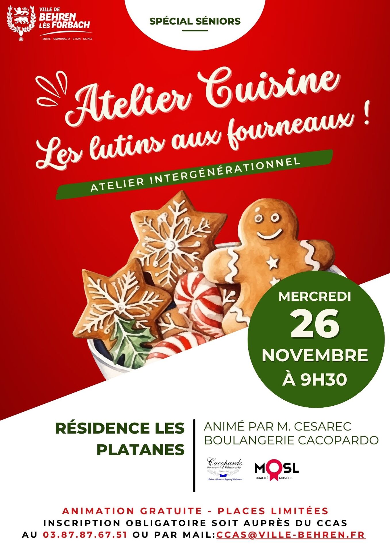 Animation gratuite - Places limitées. Inscription obligatoire soit auprès du CCAS au 03.87.87.67.51 ou par mail, ccas@ville-behren.fr