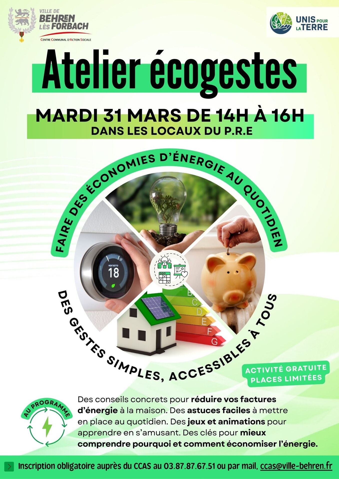 Le CCAS, en collaboration avec l’association Unis Pour la Terre, vous invite à participer à un atelier écogestes ouvert à toutes et tous :