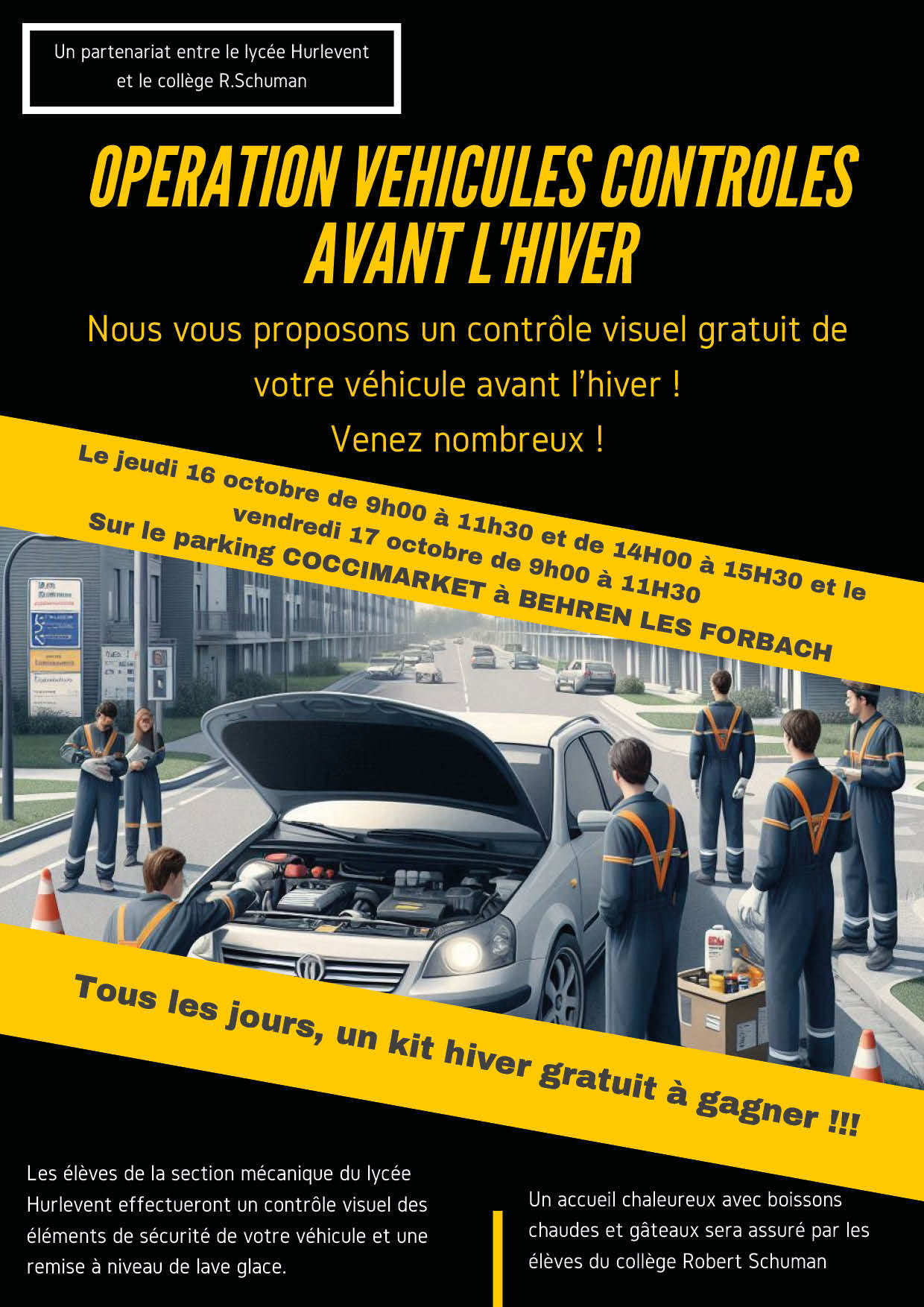 Comme chaque année, le collège, en partenariat avec le LP Hurlevent propose l'opération "véhicules contrôlés avant l'hiver":