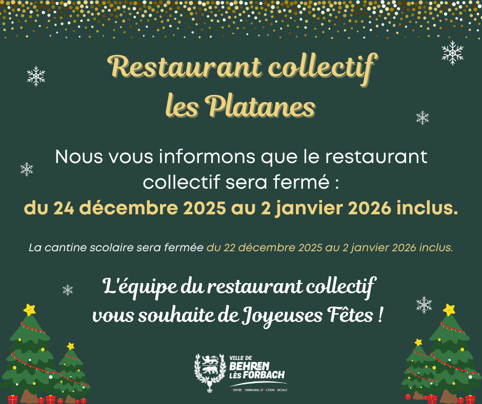 RESTAURANT COLLECTIF "LES PLATANES" | FERMETURE FÊTES DE FIN D'ANNÉE 🎄