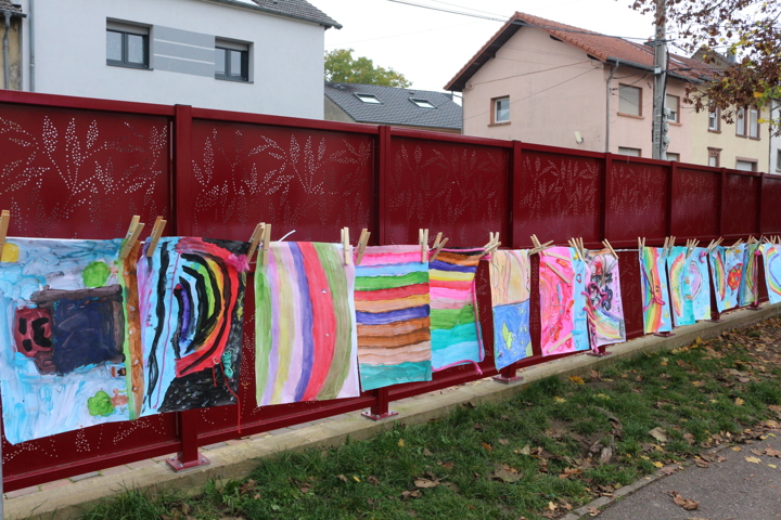 La Grande Lessive® est une installation artistique éphémère et internationale composée de réalisations plastiques de format A4 (dessins, peintures, collages, etc.) conçues à partir d'un thème commun ; cette année "La couleur de mes rêves" ; avant d’être suspendues en extérieur à des fils tendus à travers la cour au moyen de pinces à linge.